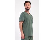 Muška pamučna pidžama sa šorcem Ralph. Muška pidžama se sastoji od majice s kratkim rukavima i kratkih šorčeva. Majicu s okruglim izrezom na prsima krasi manji natpis Himalaya. Majicu upotpunjuju karirani šorcevi koji u struku imaju gumu, vezicu za stezanje i praktične džepove. Korišteni materijal s udjelom pamuka 100% je ugodan i mekan na dodir.