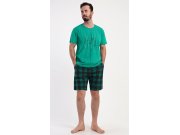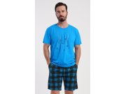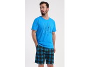 Muška pamučna pidžama sa šorcem Tetris game. Muška pidžama sastoji se od majice s kratkim rukavima i kratkih šorceva. Majicu s okruglim izrezom na prsima krasi slika igre Tetris. Majicu upotpunjuju karirani šorcevi koji u struku imaju gumu, vezicu za stezanje i praktične džepove. Korišteni materijal sa 100% udjelom pamuka je ugodan i mekan na dodir.