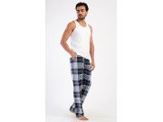 Muške pamučne pidžama hlače Bruno. Karirane hlače imaju elastičnu traku u struku, vezicu za zatezanje i praktične džepove. Materijal s udjelom pamuka 100% je ugodan i mekan na dodir.