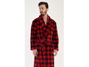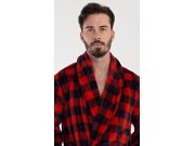 Muški soft ogrtač sa šal ovratnikom Kostka. Ogrtač ima šal ovratnik, praktične džepove i pojas za vezanje. Ukrašen je motivom kocke u crno-crvenoj boji. Korišteni soft materijal je nježan i mekan na dodir. Ogrtač će vas ugrijati na putu iz kupaonice ili tijekom opuštanja na kauču, bit će vaš dragi pratitelj u hladnim danima.