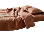 Pamučna muslin posteljina u smeđoj boji.Dimenzije posteljine su 140x200 cm i 70x90 cm.