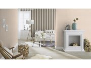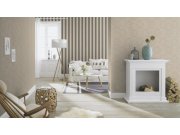 Efektna, béžovo-zlatna, prugasta flis tapeta za zid.Fotografija interijera je samo ilustrativna - različite boje.