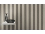 Efektna, Sivo-srebrna, prugasta flis tapeta za zid.Foto interijera je samo ilustrativno - različite boje.