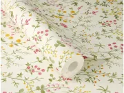 Paleta nježnih zelenih, ružičastih i žutih tonova stvara skladan i umirujući izgled, dok fini detalji cvjetova daju dizajnu profinjen, ali nenametljiv karakter. Tapeta je idealna za shabby chic, vintage ili rustikalne interijere, gdje se savršeno kombinira s drvom, bijelim namještajem, lanom ili pastelima. Donosi dojam svježine, svjetlosti i prirodne elegancije u dnevne boravke, spavaće sobe ili kuhinje.