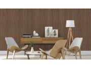 Unesite toplinu i eleganciju u svoj dom uz samoljepljivu tapetu za zid s uzorkom tamnih lamela rasch® – savršen izbor za moderan, profinjen i ugodan interijer. Ova tapeta s realističnim izgledom drvenih akustičnih panela trenutačno stvara osjećaj dubine, udobnosti i luksuza. Prirodni tamnosmeđi tonovi drva u kombinaciji s kontrastnim tamnim linijama između lamela daju prostoru suvremenu, minimalističku i skandinavsku estetiku.