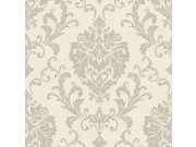 Flis tapeta s vinilnom površinom, zelena podloga, stilizirani cvjetovi u nijansama sive, bijele, sivo-plave, smeđe i ružičaste, fina tekstura. Na skladištu