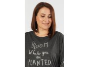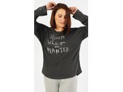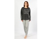 Ženska duga pidžama Berenika. Ženska pidžama sastoji se od majice s dugim rukavima i dugih hlača. Majica je tamno sive boje sa srebrnim natpisom i cvjetovima na rukavu. Hlače su svijetlo sive s ponavljajućim motivom kao na majici, na gumu su i mogu se stegnuti uzicom. Korišteni materijal sadrži 70% pamuka, podat je i ugodan na dodir.