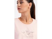 Ženska pamučna duga pidžama Petra. Ženska pidžama sastoji se od majice s dugim rukavima i dugih hlača. Majica je jednobojna, ukrašena slikom maslačka i malim natpisom. Hlače imaju u struku gumu i vezicu za stezanje, nemaju džepove. Korišteni pamučni materijal je podatak i ugodan na dodir.