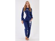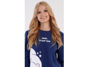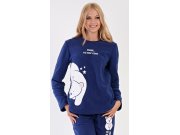 Ženska duga flis pidžama Polarni medvjed. Ženska pidžama sastoji se od majice s dugim rukavima i dugih hlača. Majica je ukrašena aplikacijom - slikom polarnog medvjeda i natpisom SHHH... ITS NAP TIME. Flis materijal je topao i mekan na dodir. Hlače s uzorkom su na gumu, imaju vezicu za stezanje i praktične džepove, također su izrađene od flisa i ukrašene istim motivom kao i majica. Hlače su završene rubovima. Ova pidžama je zbog svoje topline pogodna i kao kućna odjeća za hladne dane.