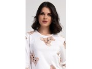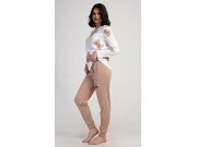 Ženska pamučna duga pidžama Teddy bear. Ženska pidžama sastoji se od majice s dugim rukavima i dugih hlača. Majica je ukrašena plišanim medvjedićima. Ovaj motiv se ponavlja i na hlačama, koje u struku imaju gumu i vezicu za stezanje, nemaju džepove. Korišteni pamučni materijal je mekan i ugodan na dodir.