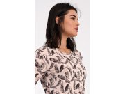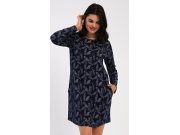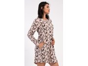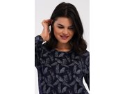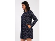 Ženska pamučna kućna haljina s dugim rukavima Isabela. Kućnu haljinu s okruglim izrezom i džepovima krasi print perja. Korišteni pamučni materijal je ugodan i mekan na dodir.