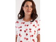 Ženska kućna haljina s kratkim rukavima Valentýna. Romantična, ali šik haljina s okruglim izrezom i džepovima. Ukrašena je srcima u jagoda boji na svijetlosivoj podlozi. Korišteni materijal je nježan i mekan na dodir. Haljina je udobna i sigurno će vam dobro doći za gotovo sve slobodne aktivnosti. Haljina je pogodna za spavanje i za svakodnevno nošenje.