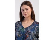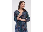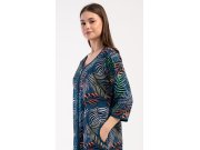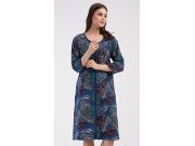 Ženska pamučna kućna haljina s tročetvrt rukavima Barbara. Udobna haljina na kopčanje, ugodne duljine ispod koljena, idealna je za gotovo sve slobodne aktivnosti. Ima praktične džepove i zatvarač na patentni zatvarač. Haljina je ukrašena egzotičnim listovima. Korišteni pamučni materijal je ugodan i mekan na dodir.