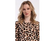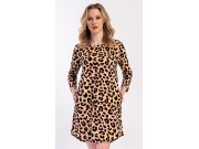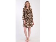 Ženska pamučna kućna haljina s tročetvrt rukavima Leona. Kućna pamučna haljina s okruglim izrezom i džepovima ukrašena je leopard uzorkom. Korišteni pamučni materijal je ugodan i mekan na dodir. Udobna kućna haljina pogodna je i za spavanje.