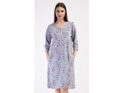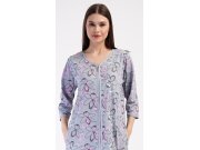 Ženska pamučna kućna haljina s tročetvrt rukavima Miana. Udobna haljina na kopčanje, ugodne duljine ispod koljena, pogodna za gotovo sve slobodne aktivnosti. Ima praktične džepove i kopčanje na patentni zatvarač. Haljina je ukrašena cvjetnim uzorkom. Korišteni pamučni materijal je ugodan i mekan na dodir.