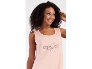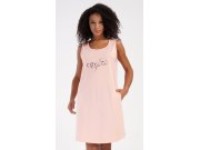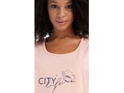 Ženska pamučna noćna košulja na naramenice Agnes. Žensku noćnu košulju sa širim naramenicama i praktičnim džepovima krasi slika cvijeta i natpis City life. Sigurno ćete je koristiti i kao ljetnu haljinu ili udobnu kućnu odjeću. Korišteni materijal s udjelom pamuka 100% je ugodan i mekan na dodir.
