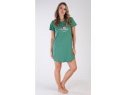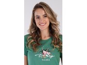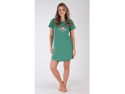 Ženska pamučna noćna košulja s kratkim rukavima Beautiful. Ženska noćna košulja s okruglim izrezom dolazi u smaragdnoj boji, na prsima ima natpis Today is beautiful i sliku egzotičnog cvijeća. Korišteni materijal sadrži 100% pamuk, ugodan je i mekan na dodir.