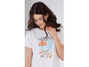 Ženska noćna košulja s kratkim rukavima Botanical. Noćna košulja s okruglim izrezom ima na prsima sliku cvijeća i mali natpis Flower market. Korišteni materijal je ugodan i podatak na dodir. Sadržaj pamuka kod mentol boje je 100%, a kod svijetlo sive 70%.