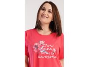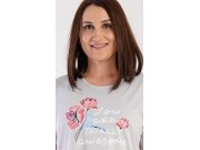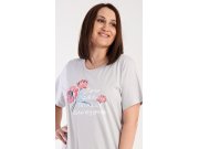 Ženska noćna košulja s kratkim rukavima Casandra. Noćna košulja s okruglim izrezom ima na prsima sliku cvijeća i natpis You are totally awesome. Korišteni materijal je ugodan i podatak na dodir. Sadržaj pamuka kod koraljne boje je 100%, a kod svijetlo sive 70%.