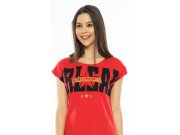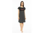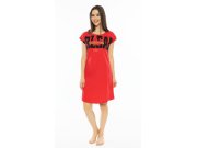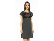 Ženska noćna košulja s kratkim rukavima Cheerleading. Noćna košulja s okruglim izrezom ima na prsima veliki natpis RELAX dopunjen zlatnim natpisom i trima zvjezdicama. Korišteni materijal je ugodan i mekan na dodir. Sadržaj pamuka kod crvene boje je 100%, a kod tamno sive 70%. Košulja je pogodna i za svakodnevno nošenje kao ljetna haljina.