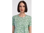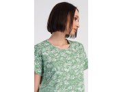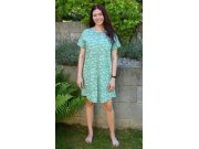 Ženska pamučna noćna košulja s kratkim rukavima Hawaii. Ženska noćna košulja s okruglim izrezom ima ugodnu dužinu iznad koljena. Košulja s kratkim rukavima je ukrašena printom palmi i egzotičnog cvijeća u zeleno-bijeloj kombinaciji. Korišteni pamučni materijal je ugodan i mekan na dodir.