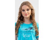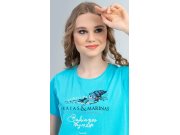 Ženska pamučna noćna košulja s kratkim rukavima More. Noćna košulja s okruglim izrezom ukrašena je morskim motivima i natpisom. Korišteni pamučni materijal je ugodan i mekan na dodir.