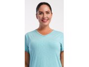 Ženska pamučna noćna košulja s kratkim rukavima Sabrina. Košulja ima ugodnu dužinu iznad koljena i V-izrez, ukrašena je naborima na rukavima i donjem rubu. Korišteni materijal s udjelom pamuka 95% je ugodan i mekan na dodir.