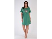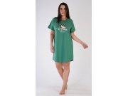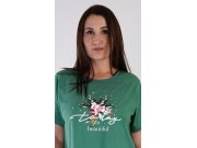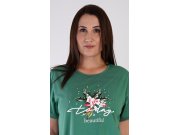 Ženska pamučna noćna košulja s kratkim rukavima Today is beautiful. Ženska noćna košulja s okruglim izrezom dolazi u smaragdnoj boji, na prsima ima natpis Today is beautiful i sliku egzotičnog cvijeća. Korišteni materijal sadrži 100% pamuk, ugodan je i mekan na dodir.