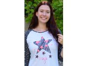 Ženska noćna košulja s tročetvrt rukavima Zvijezda. Ženska noćna košulja ima vizualno različite rukave, koji su ukrašeni sitnim zvjezdicama. Na prsima se nalazi velika zvijezda, koja u sebi ima manje zvjezdice i okružena je dodatnim zvijezdama. Ispod zvijezde nalazi se srebrnasti natpis. Korišteni materijal je nježan i ugodan na dodir. Košulja je pogodna i za svakodnevno nošenje.