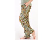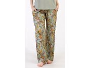 Ženska pidžama s kratkim rukavima Marta. Ženska pidžama se sastoji od majice s kratkim rukavima i dugih hlača. Majica je jednobojna, bez tiska, ima okrugli izrez. Hlače s cvjetnim uzorkom imaju u struku gumu i vezicu za stezanje, nemaju džepove. Korišteni viskozni materijal je podatak i ugodan na dodir.