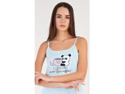 Ženska pamučna spavaćica na naramenice Coffee. Ženska spavaćica na naramenice s motivom pande s šalicom kave i natpisom I love you more than coffee. Korišteni materijal sa 100% udjelom pamuka je ugodan i mekan na dodir.