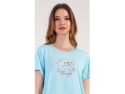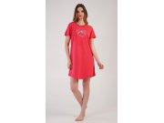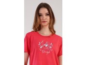 Ženska pamučna spavaćica s kratkim rukavima Eliška. Spavaćica s okruglim izrezom ima na prsima sliku cvijeta i mali natpis. Korišteni pamučni materijal je ugodan i mekan na dodir.