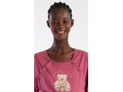 Ženska pamučna trudnička spavaćica Dominika. Spavaćica je krojem prilagođena za vrijeme trudnoće, za rodilište i za dojenje. Za dojenje služe prorezi sa stranicae spavaćice koji se zatvaraju na gumbe. Prednji dio spavaćice ukrašen je slikom dva plišana medvjedića. Korišteni materijal s udjelom pamuka 100% je ugodan i mekan na dodir.