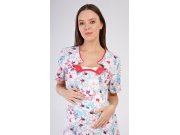 Ženska pamučna trudnička spavaćica Ellie. Spavaćica je krojem prilagođena za vrijeme trudnoće, za rodilište i za dojenje. Za dojenje služe otvori sa stranicae spavaćice koji se zatvaraju na gumbe. Spavaćicu krasi otisak šarenog cvijeća i obrub u koraljnoj boji. Korišteni materijal s udjelom pamuka 100% je ugodan i mekan na dodir.