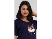 Ženska pamučna trudnička spavaćica s kratkim rukavima Medo na oblaku. Spavaćica je krojem prilagođena za vrijeme trudnoće, za rodilište i za dojenje. Za dojenje služe prorezi sa stranicae spavaćice koji se zatvaraju na gumbe. Jednobojna spavaćica ukrašena je slikom medvjedića koji odmara na oblaku. Korišteni materijal s udjelom pamuka 100% je ugodan i mekan na dodir.
