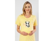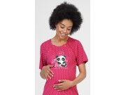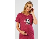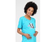 Ženska pamučna trudnička spavaćica My love. Spavaćica je krojem prilagođena za vrijeme trudnoće, za rodilište i za dojenje. Za dojenje služe prorezi sa stranicae spavaćice koji se zatvaraju na gumbe. Na točkasto podlozi nalazi se slika odmaraće pande i natpis My love - we will see better days. Korišteni materijal je ugodan i podatak na dodir. Korišteni materijal je ugodan i podatak na dodir. Sadržaj pamuka kod svijetlo sive boje je 70%, ostale kombinacije boja imaju 100% pamuka.