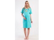 Ženska pamučna trudnička spavaćica Papiga. Spavaćica je krojem prilagođena za razdoblje trudnoće, boravak u rodilištu i za dojenje. Za dojenje služe otvori sa stranicae spavaćice koji se zatvaraju na gumbe. Jednobojna spavaćica ukrašena je na prsima slikom papige. Korišteni materijal s udjelom pamuka 100% je ugodan i mekan na dodir.