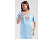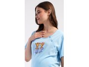 Ženska pamučna trudnička spavaćica Žirafe. Spavaćica je krojem prilagođena za vrijeme trudnoće, za rodilište i za dojenje. Za dojenje služe otvori sa stranicae spavaćice koji se zatvaraju na gumbe. Prednji dio spavaćice ukrašen je slikom veselih žirafa. Korišteni materijal s udjelom pamuka 100% je ugodan i mekan na dodir.
