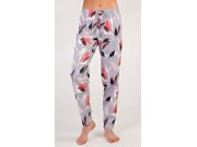 Ženske pamučne pidžama hlače Lucie. Duge hlače ukrašene su šarenim listovima na sivom podlozi. Hlače imaju elastičnu pasicu i praktičnu vezicu za stezanje, nemaju džepove. Korišteni pamučni materijal je ugodan i mekan na dodir. Hlače su prikladne i za svakodnevno nošenje.