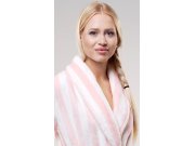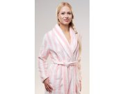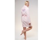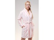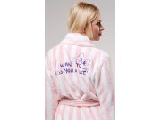 Ženski soft kratki ogrtač Alice. Ženski prugasti ogrtač s džepovima i pojasom za vezanje ima topli šal ovratnik. Na leđima ogrtača je izvezen natpis I want to Kiss you a lot s preslatkom mačkicom. Korišteni materijal je nježan i mekan na dodir. Ogrtač će vas lijepo zagrijati nakon kupanja ili tijekom opuštanja na kauču.