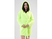 Ženski kratki soft ogrtač s kapuljačom Limeta. Ženski ogrtač s kapuljačom, pojasom za vezanje i džepovima ugrijat će vas na putu do kreveta ili nakon kupanja. Korišteni soft materijal je nježan i podatak na dodir.