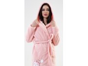 Ženski kratki soft ogrtač s kapuljačom Mačka. Ženski ogrtač s kapuljačom, pojasom za vezanje i džepovima ugrijat će vas na putu do kreveta ili nakon kupanja. Sa stranicae se nalazi slika slatke mačkice. Korišteni soft materijal je nježan i mekan na dodir.