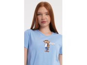 Ženski pamučni pidžama šorc Bear. Ženski pidžama se sastoji od majice s kratkim rukavima i šorca. Jednobojnu majicu krasi slika medvjedića. Ovaj motiv se ponavlja i na prugastom šorcu, koji ima elastičnu traku u struku i vezicu za stezanje, bez džepova. Korišteni pamučni materijal je ugodan i mekan na dodir.