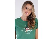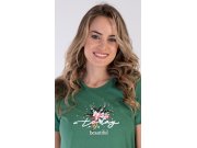 Ženska pamučna pidžama šorc Beautiful. Ženska pidžama se sastoji od majice s kratkim rukavima i šorca. Na jednobojnoj majici nalazi se slika šarenog cvijeća i natpis Today is beautiful. Motiv cvijeća ponavlja se i na šarenim šorcevima. Šorc ima elastičnu traku i vezicu u struku, bez džepova. Korišteni pamučni materijal je ugodan i mekan na dodir.